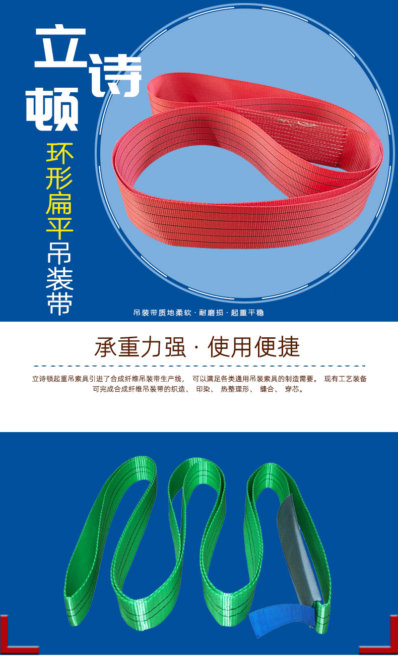 摘要描述:立詩(shī)頓起重吊索具擁有合成纖維吊裝帶產(chǎn)線,可生產(chǎn)扁平吊裝帶、吊裝帶組合索具、起重葫蘆、鏈條組合索具、汽車拖車帶、起重吊鉗、搬運(yùn)車、多功能提升機(jī)、氣動(dòng)千斤頂?shù)犬a(chǎn)品,可按需定制······