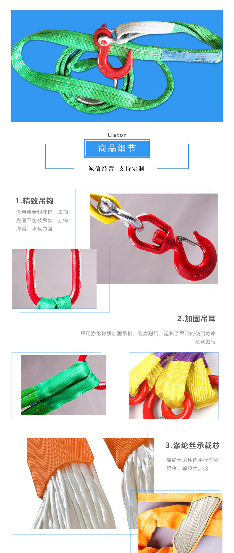 摘要描述:立詩(shī)頓起重吊索具擁有合成纖維吊裝帶產(chǎn)線,可生產(chǎn)扁平吊裝帶、吊裝帶組合索具、起重葫蘆、鏈條組合索具、汽車拖車帶、起重吊鉗、搬運(yùn)車、多功能提升機(jī)、氣動(dòng)千斤頂?shù)犬a(chǎn)品,可按需定制······